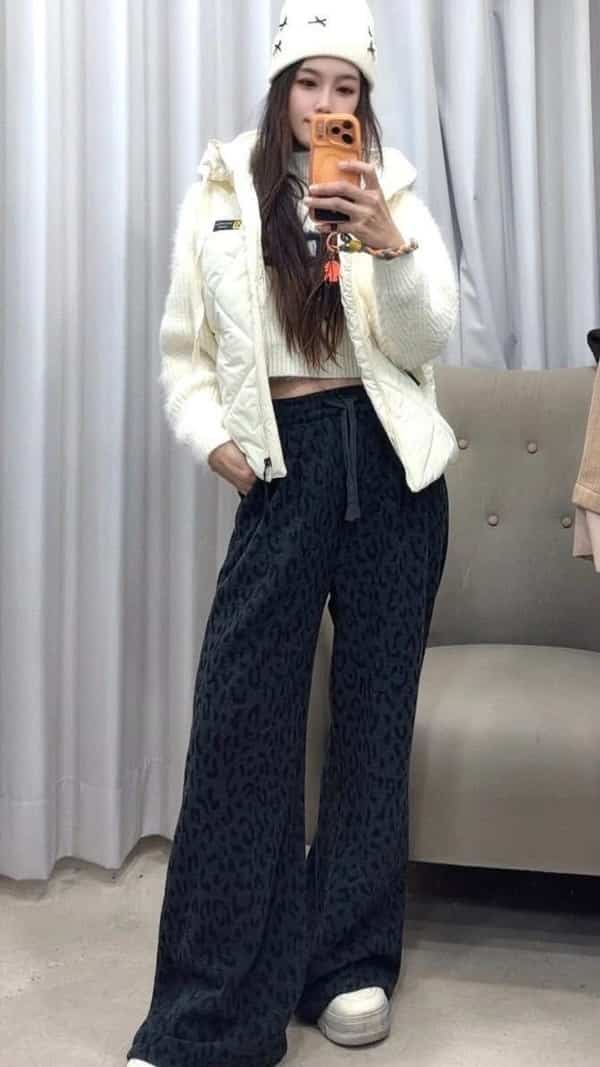 🇱🇦 🇵🇺🇷🇪 韓國🇰🇷新品現貨上 豹紋🐆刷毛落地刷毛寬褲 這件豹紋是那種低調質感的深色系 🖤 近看細節滿滿 遠看又非常有層次感的暗紋 🐆 內裡加絨刷毛處理 穿上去軟綿綿的超級親膚、又夠保暖🔥 冬天❄️想穿得漂亮又不想被冷到 選這件就對了 高腰垂墜的版型 視覺上直接腿長 +5cm🥹 鬆緊抽繩設計 不挑身材 穿去吃大餐也完全沒壓力 🥯 彈性超好~ 簡單配件黑色毛衣就很有型 慵懶又帶點小個性 灰色帥氣、黑色百搭 兩色真的都會選色障礙 👀🫧 🌵尺寸:free size 🌵顏色:黑/灰