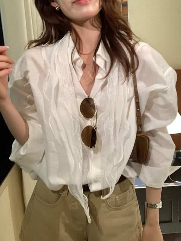 🇱🇦 🇵🇺🇷🇪 韓國🇰🇷新品預購上 春日新品🇰🇷 🌸法式天絲防曬襯衫+ 絲巾套組 這套法式感真的太迷人了❣️ 防曬襯衫版型簡約俐落, 天絲面料柔順不悶熱, 隨手繫上絲巾就很有氣質。 春夏想要優雅又實穿, 這件絕對是衣櫃必備✅😎 🌵顏色:白色 🌵胸圍60 長71 cm